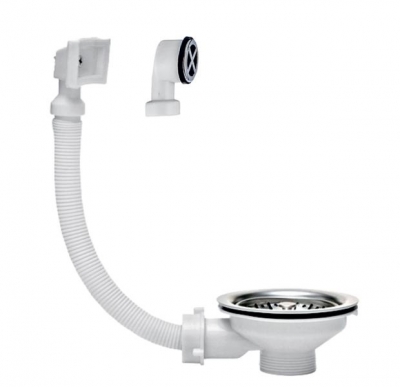 Выпуск для мойки 3 1/2"х40 с нержавеющей чашкой и универсальным переливом. Предназначен для организации слива воды для мойки. Состав (материалы): полипропилен, нержавеющая сталь Диаметр присоединения выпуска сифона (в дюймах): 3 1/2" Диаметр трубы (гибкого соединения) для слива (в мм): 40 Тип выпуска: сборный Решетка выпуска: D 112 мм Наличие сетки: да, нержавеюшая сталь Монтажная высота (выпуска): 55 мм Наличие перелива: да, L 300 мм., круглый и прямоугольный Комплектация: выпуск, фильтр пробка, перелив круглый и прямоугольный.
