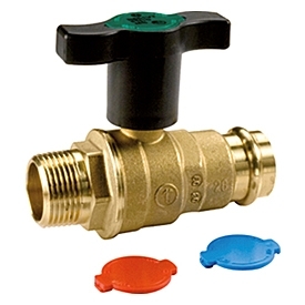 Кран шаровой латунный, внешнее пресс-соединение с черным o-ring кольцом, в соответствии с EN681-1 для систем распределения воды ( питьевая вода и отопление), имеет удлиненную пластиковую ручку для труб с термоизоляцией. Полнопроходной.